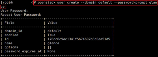 - glance 유저가 service 프로젝트에 대한 admin 권한을 부여 받도록 역할 할당