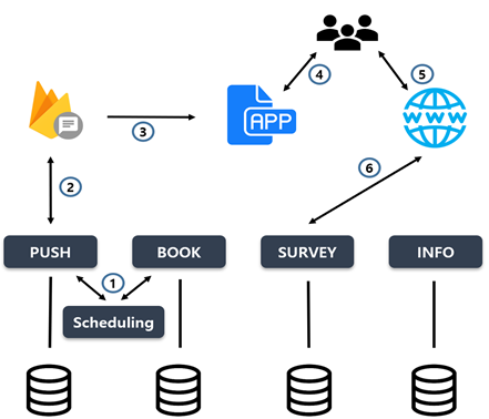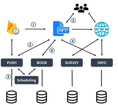 1. survey push 서비스는 정해진 시간마다 BOOK API를 호출해 예약된 사용자 목록을 받아오고 그것을 담아 PUSH API에 POST 요청