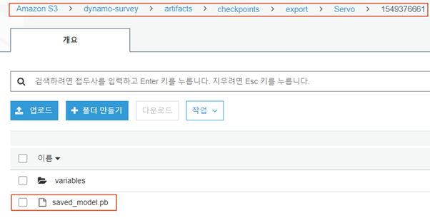 모델 데이터 위치의 S3에 진입하면 [그림 3.4-8]처럼 생성된 ML 모델을 확인할 수 있다.